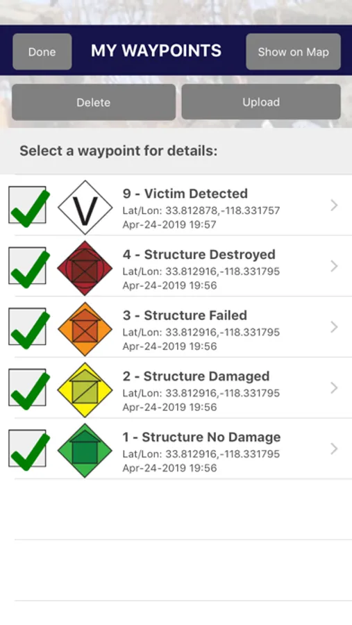 U.S. Disaster Surveyor is designed by and for domestic first responders for collecting information to coordinate urban search and rescue operations. Compliant with NAPSG USAR v7 Waypoint symbology for FEMA and SUSARs, as well as simple team messaging, maps and more. The app and accompanying website give any team or group the ability to gain situational awareness for disaster recovery and rescue efforts. All information uploaded to the website can be exported to Excel, KML, and GPX formats and posting to one's ArcGIS Online Operations Dashboard. Disaster Surveyor provides a complete solution to your emergency team coordination needs.