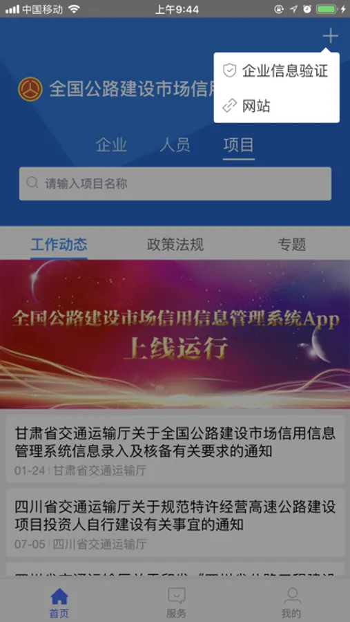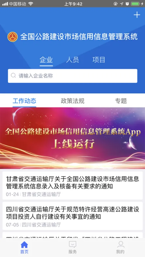 全国公路建设市场信用信息管理系统移动客户端,是交通运输部公路局提供在线服务的平台,为交通行业主管部门、建设单位、从业企业以及社会公众提供服务,包括市场监管、招投标服务、信息查询等。