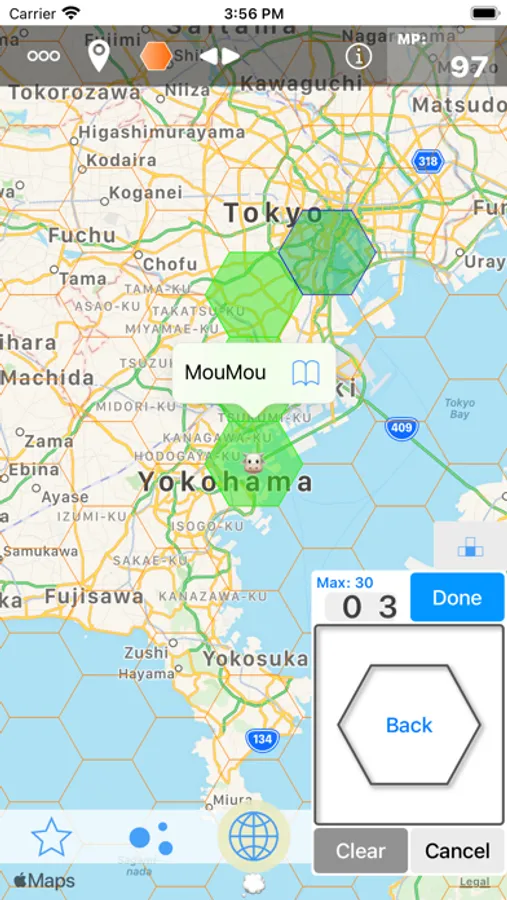 From there, you can move freely, regardless of land or sea, along a hexagonal square.