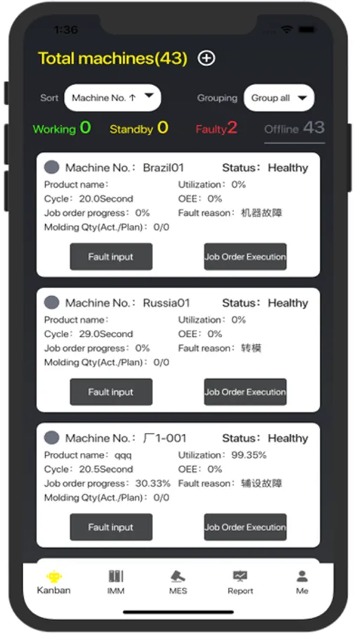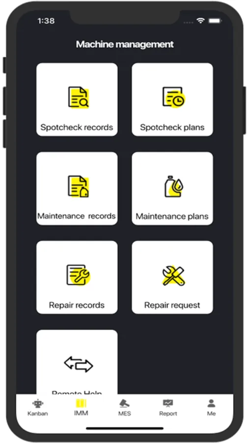 1, Kanban: know your machine status, production output, cycle time, etc.