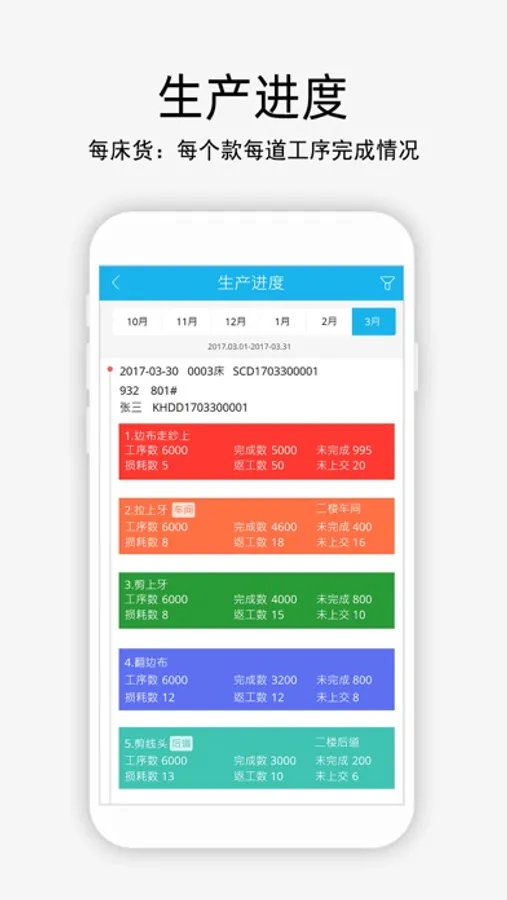 随时查看:客供加工商的欠款、订单进度、生产进度、员工产量、月报表、成本利润、费用、经营情况、图表分析等。