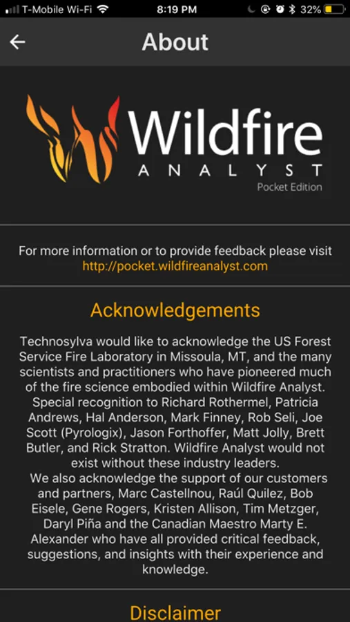 WFA Pocket uses concepts and formulas developed by the US Forest Service Missoula Fire Sciences Lab to perform fire behavior calculations. It is a culmination of the wonderful science made possible by the work of applied wildfire scientists and wildland firefighters across the world. WFA Pocket compiles knowledge gained from the five-plus decades of applied research on wildfire behavior, and is intended to serve as a companion to the Fire Behavior Field Reference Guide (PMS 437).