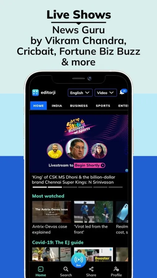 Live Shows – News Guru by Vikram Chandra, Cric Buzz, Fortune Biz Buzz & more