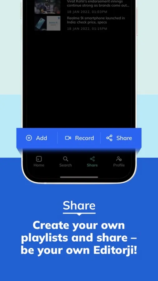 You can create your own local and international news playlists using verified stories, choose to add your video opinion, and share on Facebook, Twitter, Whataspp, Telegram, Share Chat, Koo, Google+, email and more.
