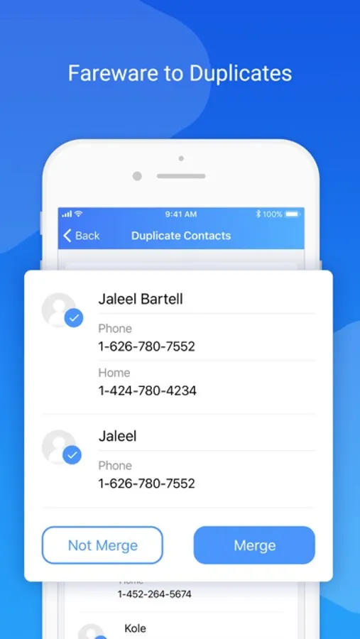 2. Preview and select the duplicate contacts and tap to merge them into one contact in the way you wish.