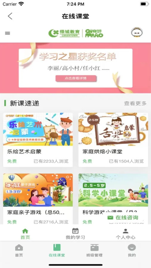 1.家长可在线查看宝贝在园区的生活学习情况;