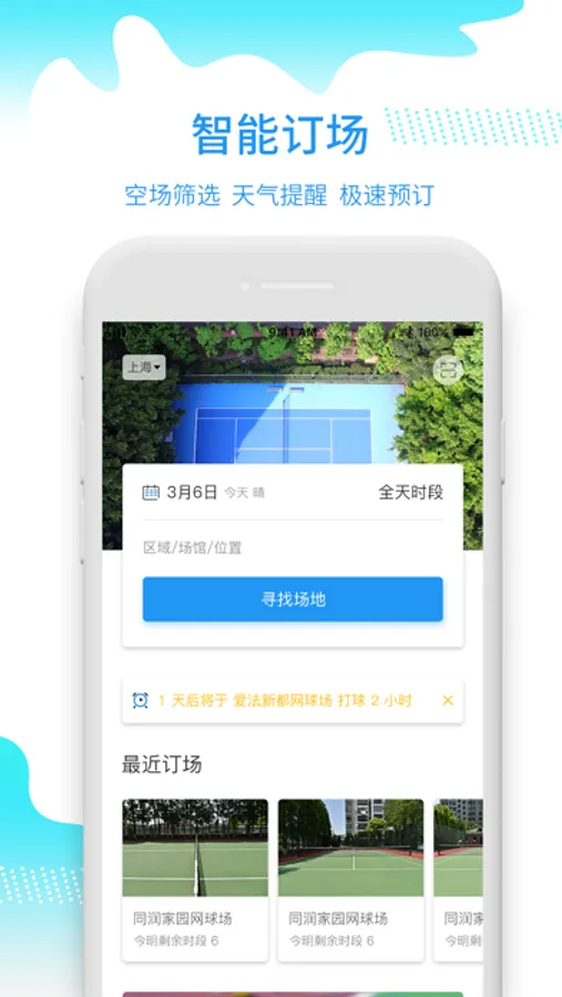 「韵动吧」,网球界的智能订场利器,极速订场、贴心服务、智能球场~