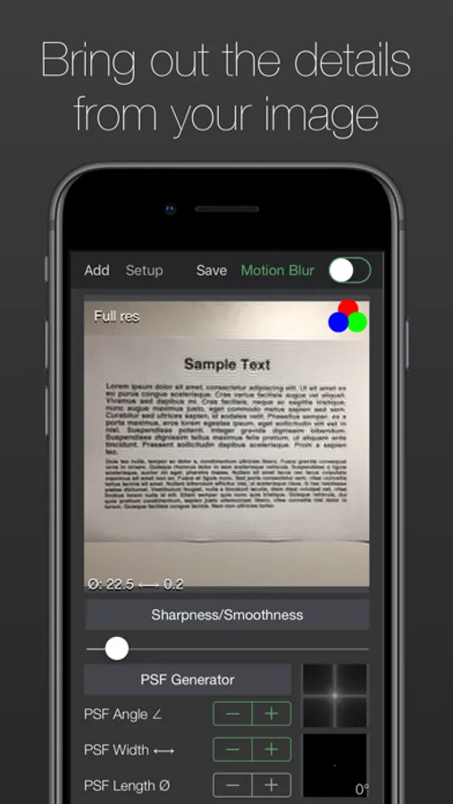 - Focus defocused photos, letting you see their details such as text or blurred subjects;