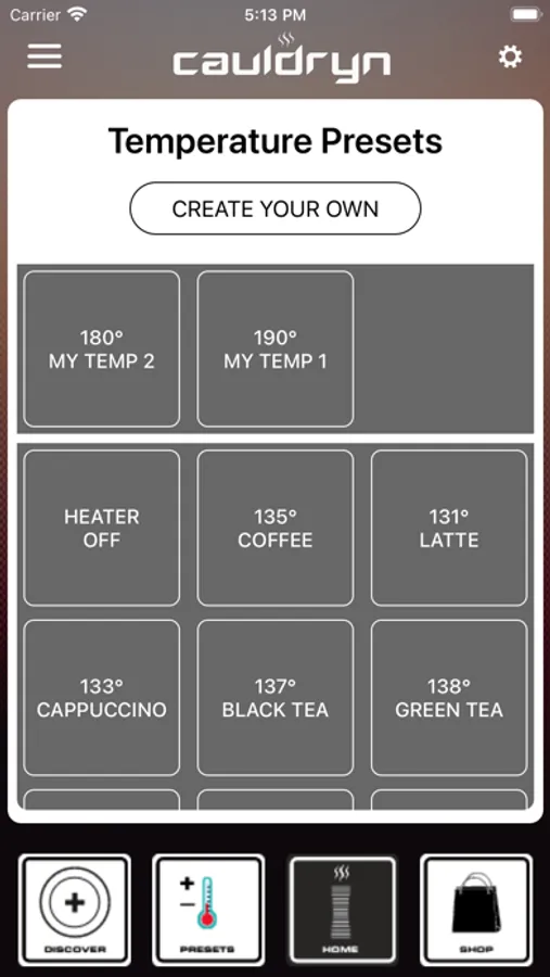 With the Cauldryn mug, you can select any temperature you want between room temp and boiling.