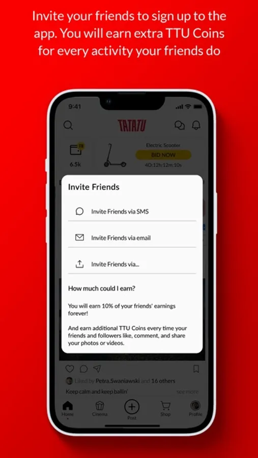 TaTaTu is the first social media app that rewards you for viewing content and for your social media activities. You can watch videocontent, post your photos ,videos and earn even more TTU Coins when someone likes, comments, views or shares your post or receive a call or message from a friend.