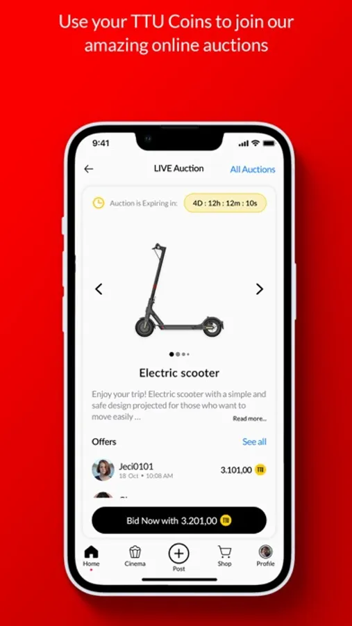 Each day, each week, each month, TaTaTu will offer the community an auction with must-have products (hi-tech, smartphone and coming soon even moto-scooters, and cars) that users can win using just TTU Coins.