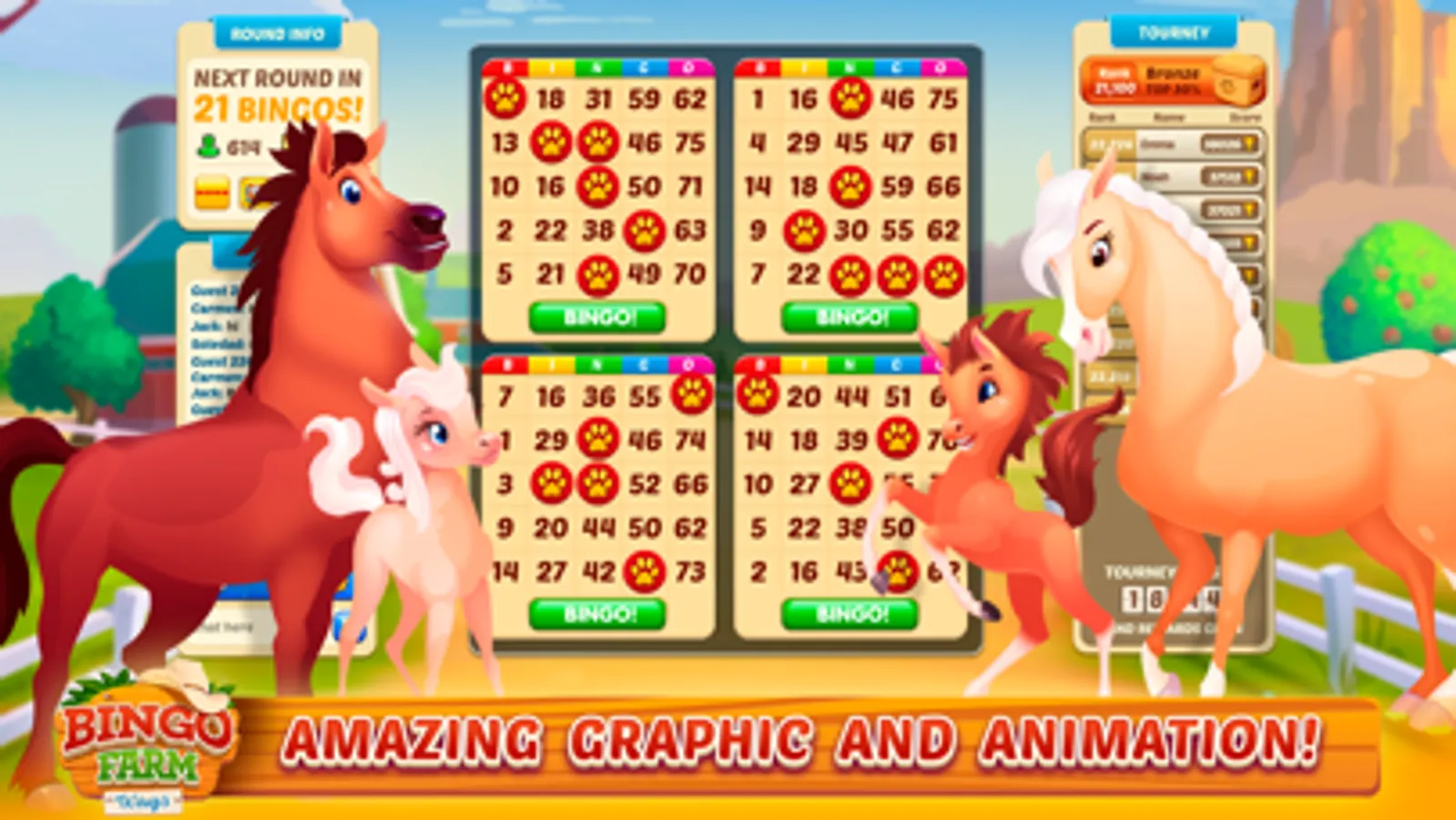Bingo Farm Ways is an addictive bingo game where you can win the most! Compete with players from around the world in a tournament-style game designed like farm and have a lot of fun. The high-quality graphics and animation will make you feel like you’re really there!
