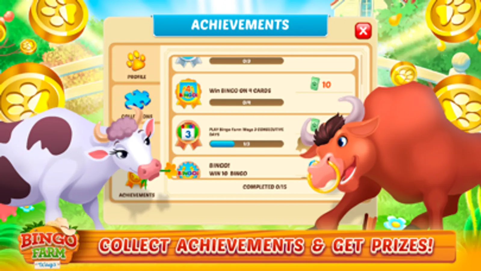 PLEASE NOTE! Bingo Farm Ways is free to download and play, however, some game items can also be purchased for real money.