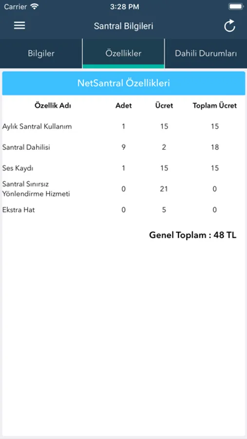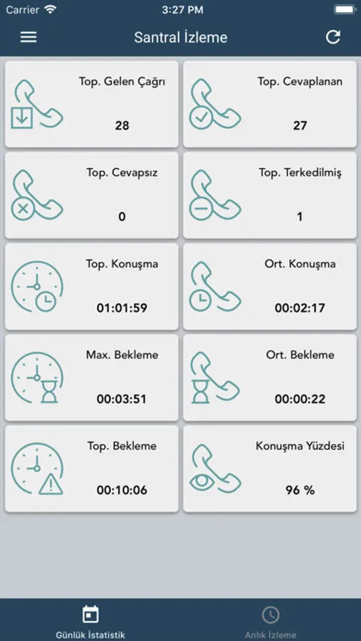 Bu uygulama üzerinden, santralinizi anlık olarak gün-departman-kullanıcı bazlı listeler halinde görüntüleyebilirsiniz.