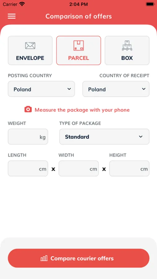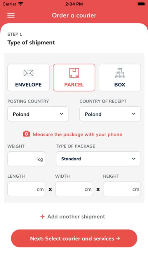 - You will get access to useful tools that facilitate sending shipments – e.g. the option of measuring the dimensions of the package without the need to use a measuring cup.