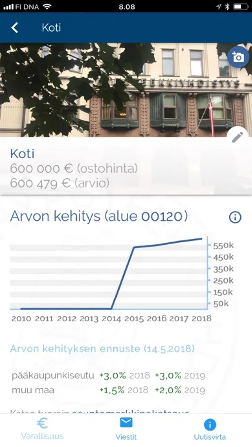 • Katsella vakuutena olevien asuntojen tietoja ja lisätä oman kuvan kullekin vakuuskohteelle