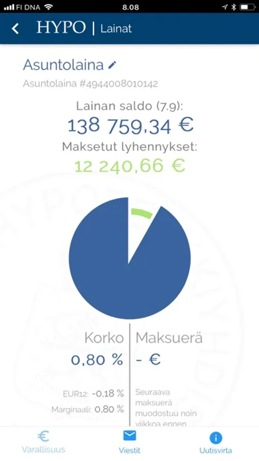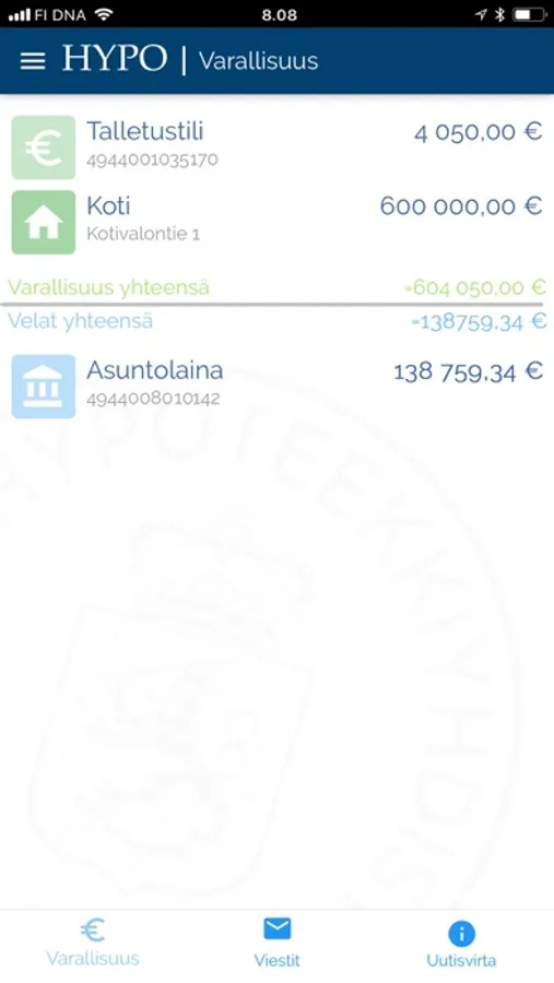 Hypon Mobiilipankin avulla näet lainojesi, talletuksesi ja asuntovarallisuutesi tilanteen helposti ja turvallisesti. Mobiilipankissa voit myös viestiä ja tehdä toimeksiantoja Hypolle helposti ja suojatusti. Ota kodistasi kuva ja seuraa asunnon hinnan kehitystä tai tutustu Hypon uutisvirtaan!