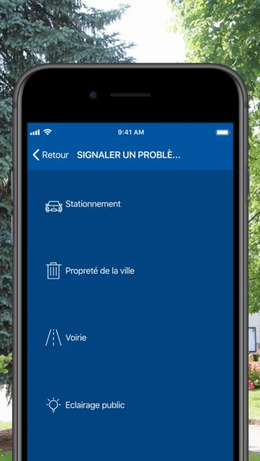 • Signalez instantanément les incidents que vous rencontrez : chaussée endommagée, graffiti, éclairage public défaillant, etc.