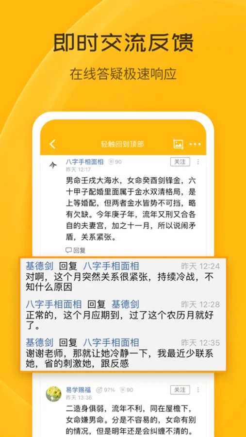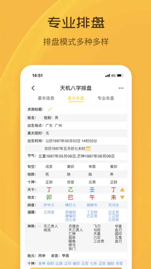 科学的周易八字排盘算命服务,集结众多命理算命大师,为用户提供真人在线快速回复咨询服务,随时随地为您进行预测解惑。作为专业易学国学爱好者交流平台,这里汇集了无数易学大师和八字算命爱好者。天机八字排盘占卜工具,比星座、塔罗牌更准确,更适合国人,不管是测算八字运势,还是从事八字专家或爱好者,天机八字排盘都是你的不二选择,这是一款比灵机、算命、卜易居、星座大师、问真八字、排盘宝更好玩的app。