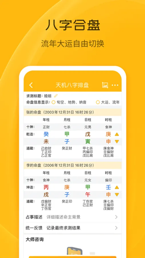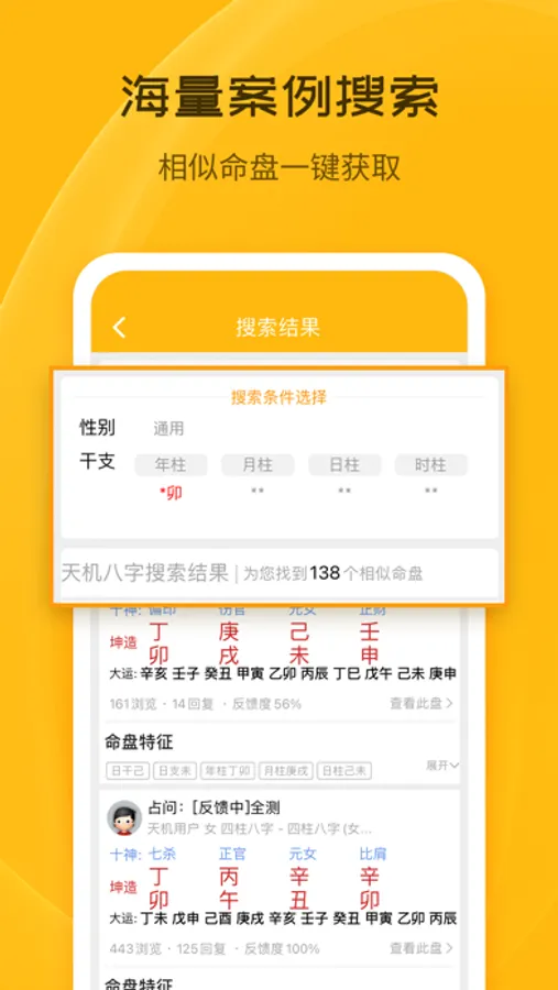 【咨询】:八字姻缘、生辰八字查询、八字推算。海量真实有效八字排盘案例、精华断语,起卦摇卦卜卦问卦轻松完成,让您的断卦水平精进不休。