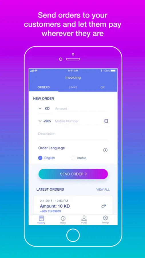 • Simply by entering the amount, mobile number, description (if any) and finally clicking on “Send Order”