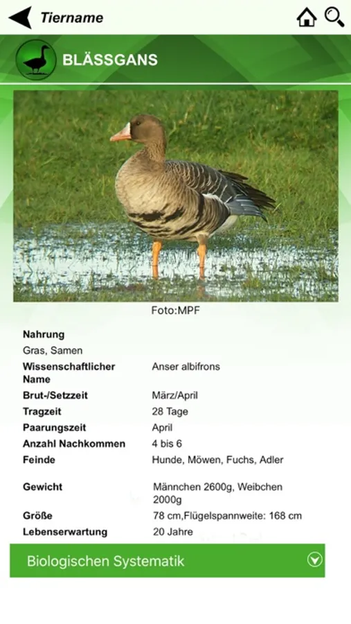 - Informationen über das Fortpflanzungsverhalten, Anzahl der Nachkommen, Paarungszeit, Gewicht, Höhe, Lebenserwartung und kurze Beschreibungen des Lebensraums.