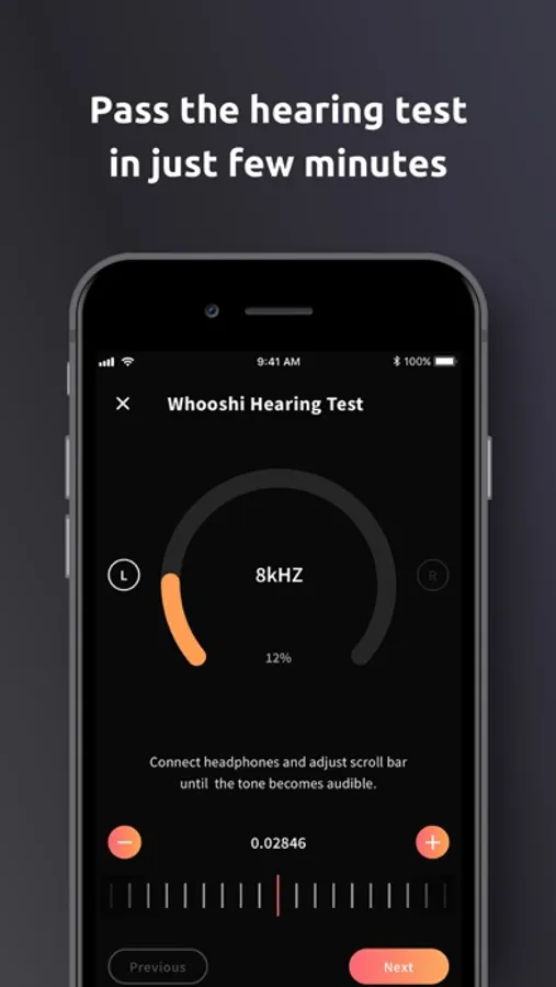Whooshi is the first player app that tailors music to your ears’ unique sensitivity. Pass the hearing test, and Whooshi will do the rest, using sophisticated algorithms and considering the headphones’ peculiarities. You can choose your level of immersion!