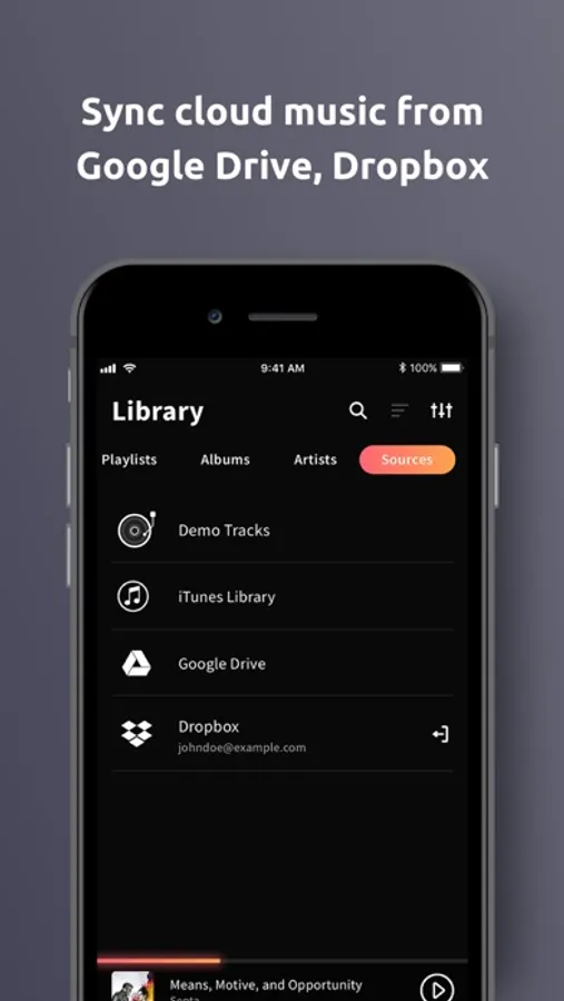 Save disc space and listen to music from cloud storages like Dropbox or Google Drive.