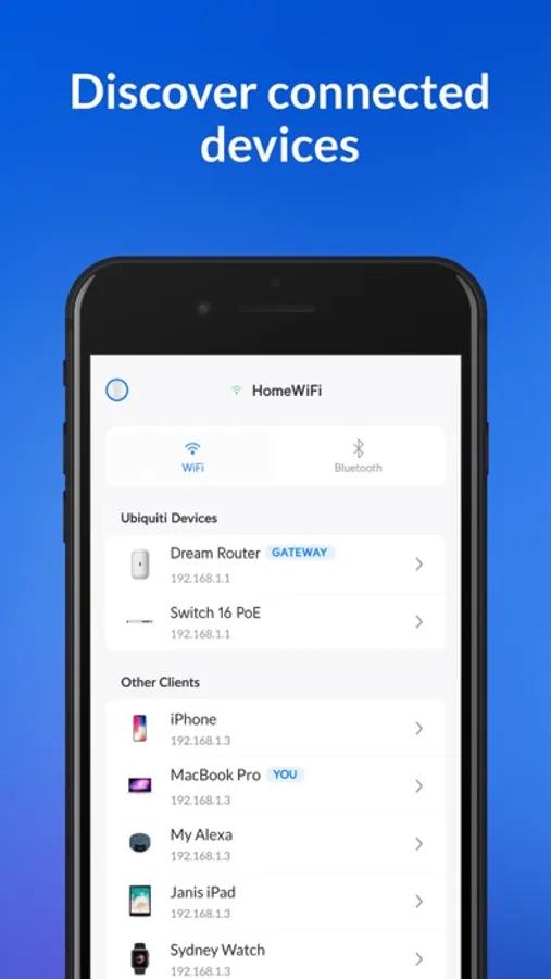 - Scan network subnet for details on available devices, using Bonjour, SNMP, NetBIOS, and Ubiquiti discovery protocols.