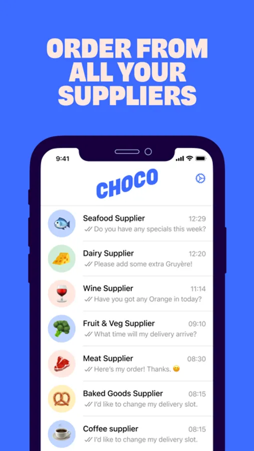 - Order from all of your suppliers, from anywhere - Choco is available on all mobile and tablet devices