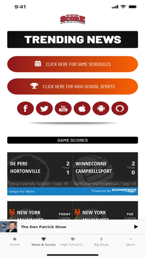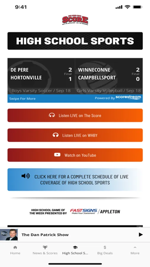 The Score WI has the state’s best sports talk line up. Steve Czaban gets you started in the morning, followed by The Dan Patrick Show. Then it's your national dose of the NFL and all things sports and entertainment with The Rich Eisen Show. Leo and Balky have you covered for a local perspective with The Show and the day wraps up with Drew & K.B. The Score WI is home to available live coverage of the Marquette Golden Eagles, NASCAR, the NCAA tournament, Masters, PGA Championship, NFL & College Football. Plus, the best when it comes to High School sports play-by-play.