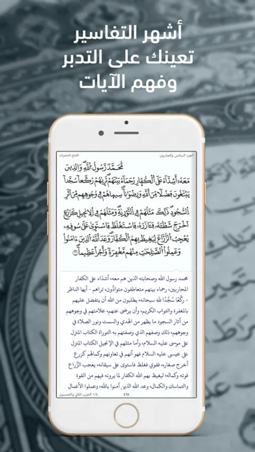 يُعد هذا التطبيق مكتبة صوتية متكاملة للاستماع إلى تلاوات القرآن الكريم بترتيل مئات من مشاهير وأعلام القُراء في العالم الإسلامي. ويُقدم ضمن تصميمات أنيقة في 4 ألوان مختلفة، منهم اثنان لوضع القراءة الليلية، ويتيح الاطلاع على المختصر في تفسير القرآن الكريم.