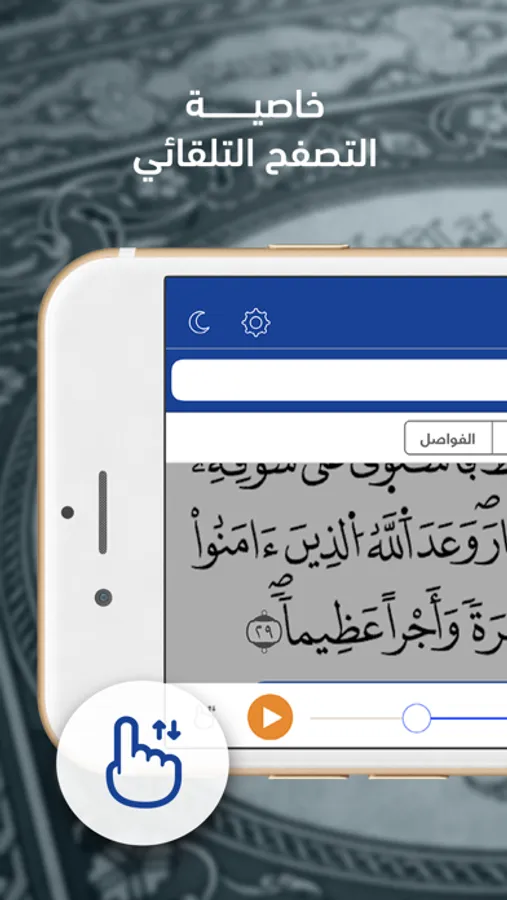 فواصل لتعيين موضع الوقف عن الانتهاء من القراءة، لسهولة العودة لمتابعة وردك اليومي.