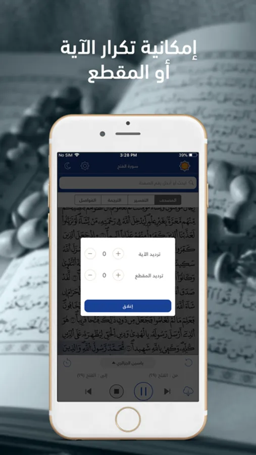 الاستماع لقدر معين من السورة وترديد المقطع بعدد مرات محددة