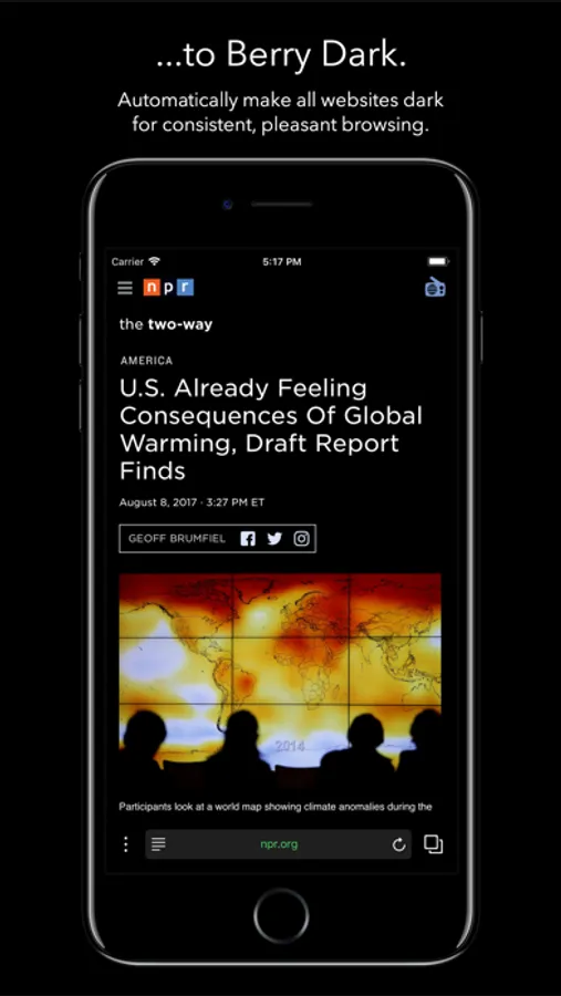 Stop getting blinded by bright white websites. Reduce eye strain, get better sleep with Berry's dark, beautiful browsing and interface. It even works with Night Shift, allowing you reduce blue light at night while browsing.