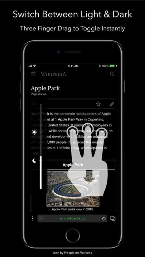 Three finger drag up and down to quickly toggle Light or Dark Mode on any site. It also lets you go even darker - a convenient way to further adjust brightness without going to control center.