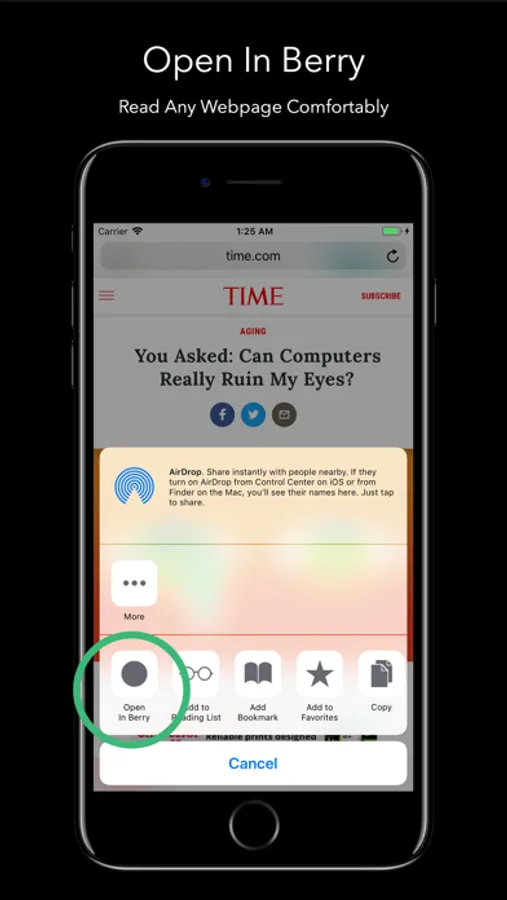 On iPhone X, browsing with Berry can extend your battery life because darker pixels use less power. For other devices, increasing the contrast between text and background can allow you to lower your screen's brightness, saving battery.