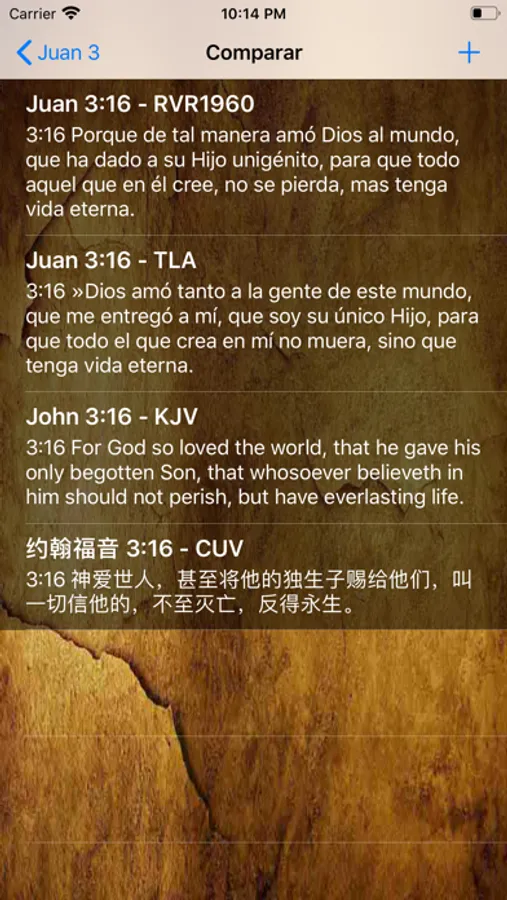 - Compara versículos entre distintas traducciones (RVR1960, RVR1909, TLA, KJV, CUV)