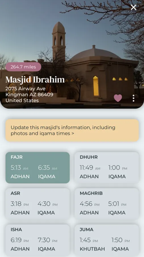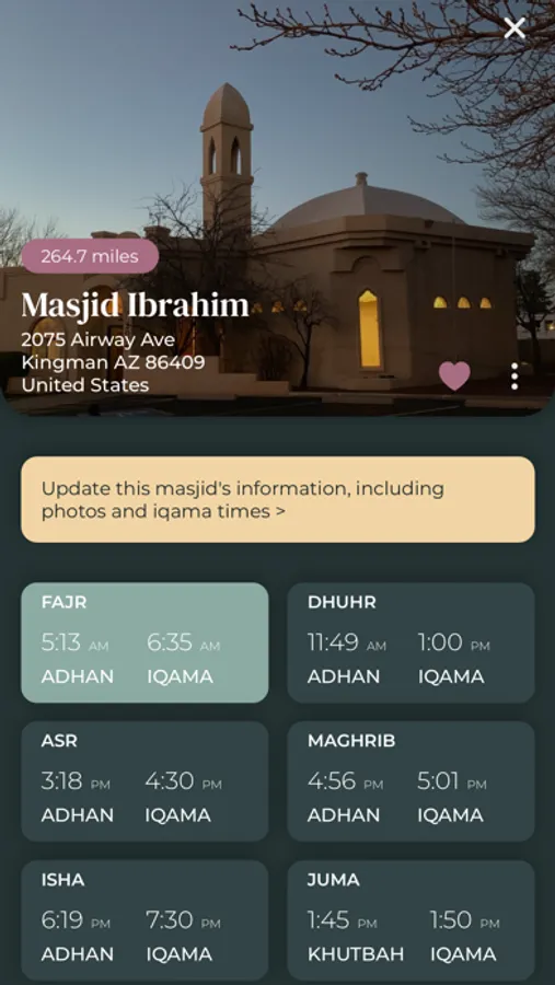 Do you run or manage a masjid or community center? GREAT! Get in touch with us and we can get you exclusive access to maintaining your own listing.