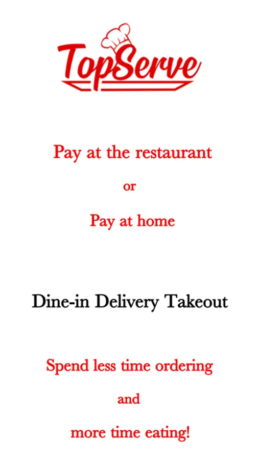 TopServe enables you to order at the table inside a restaurant and pay quickly. You can also get delivery from home, reserve a table and so much more.