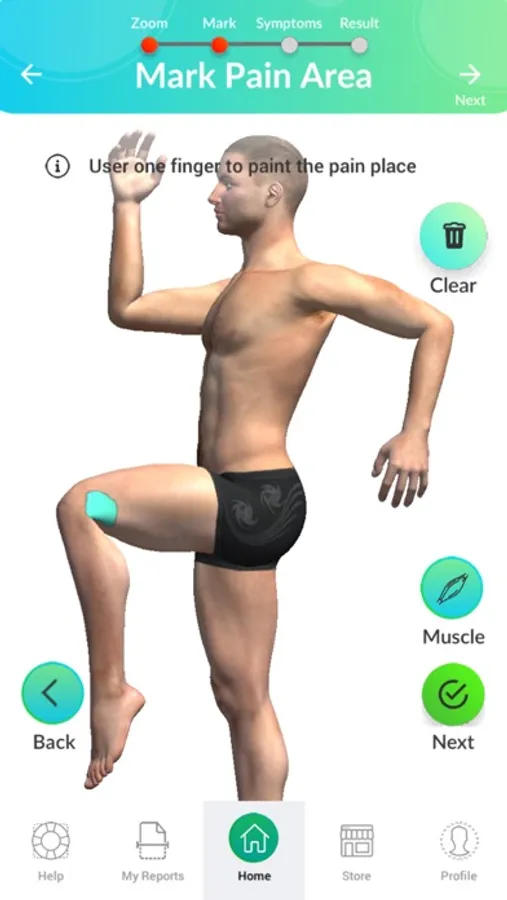 1. Mark your pain areas in 3D. Rotate, move, zoom the model. Match your pain pattern against the Human Myofascial Pain Atlas.