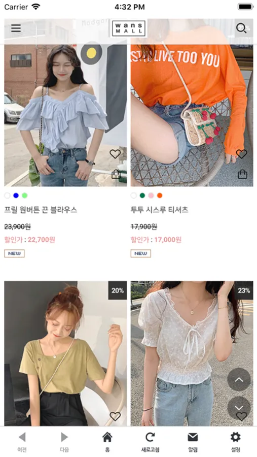 트렌디한 여성의류 쇼핑몰 완스몰입니다.