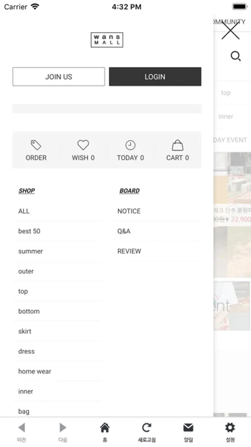 본 APP은 웹사이트 쇼핑몰과 100% 연동되어 있어