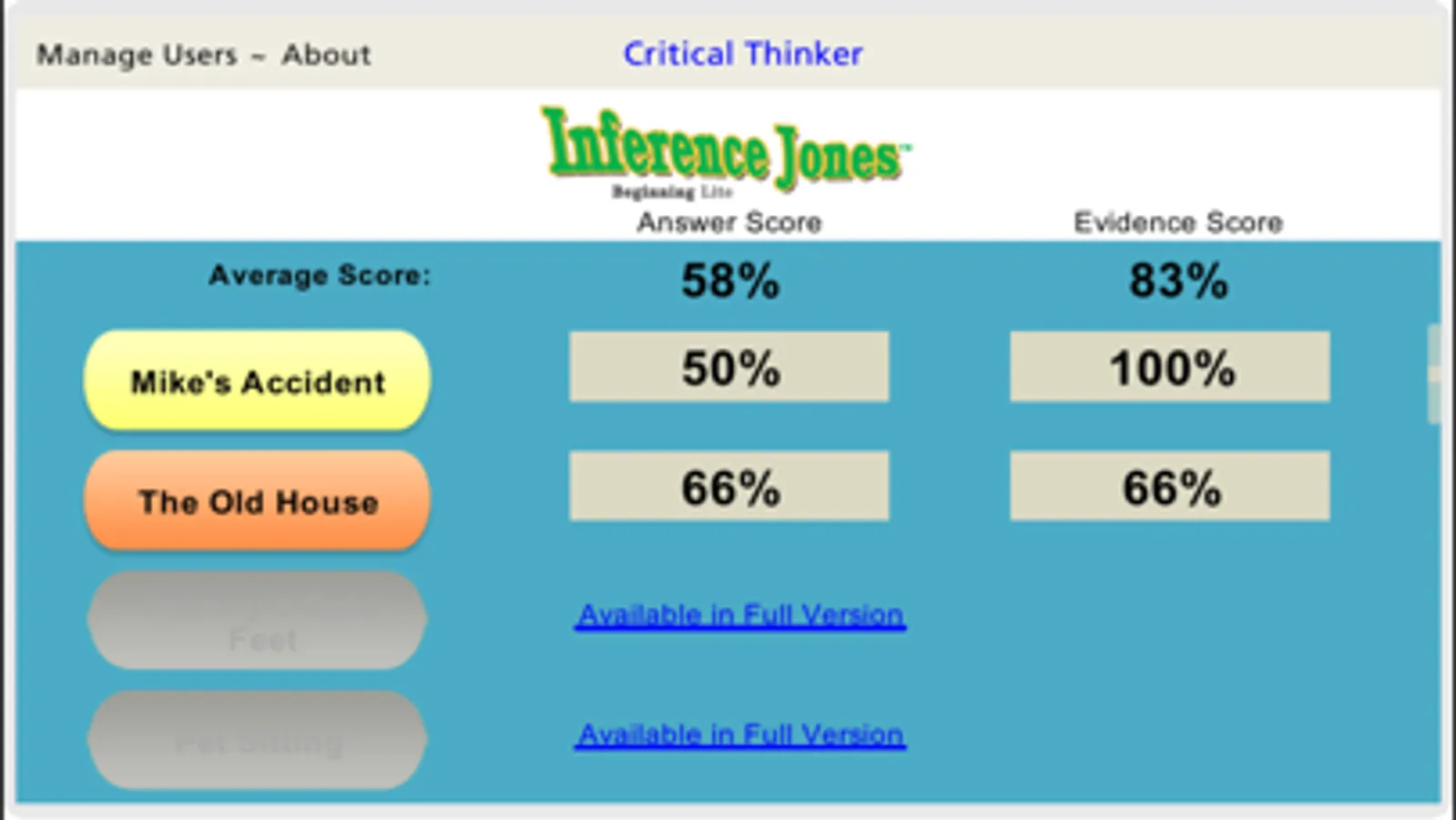 Inference Jones Beginning includes zany, amusing, and clever short stories full of hints and clues to help students hone their inference skills. It has a readability level appropriate for Grades 3-4 but can also be used as a remedial resource for older students (Grades 5-12+).