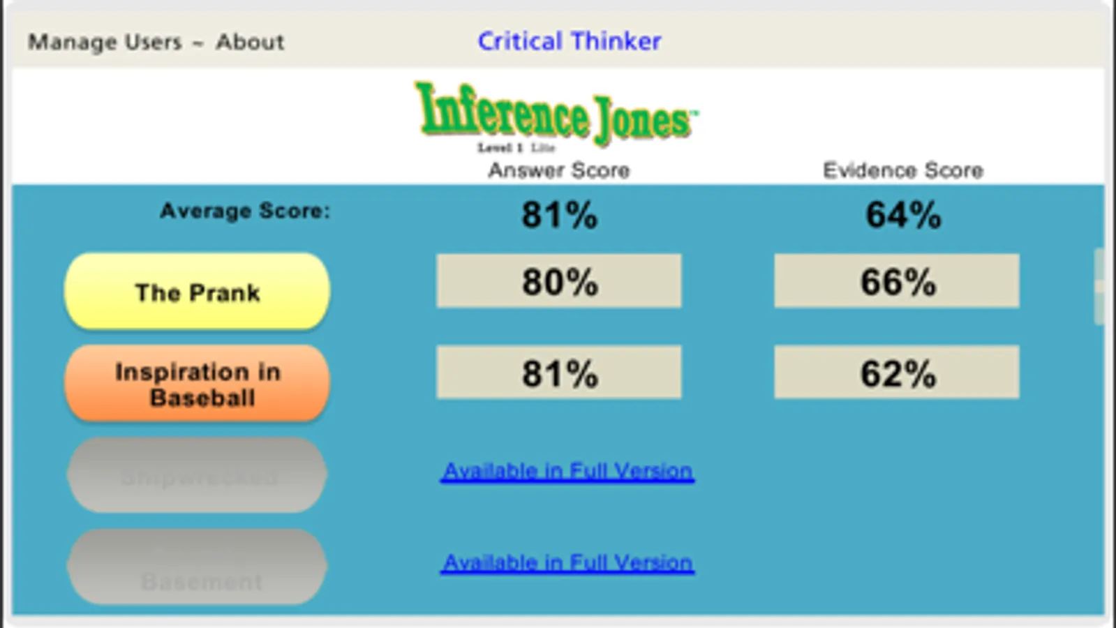 Inference Jones' standards-based approach sharpens students' language, reading, and thinking skills for better academic performance and higher scores on assessment tests including: