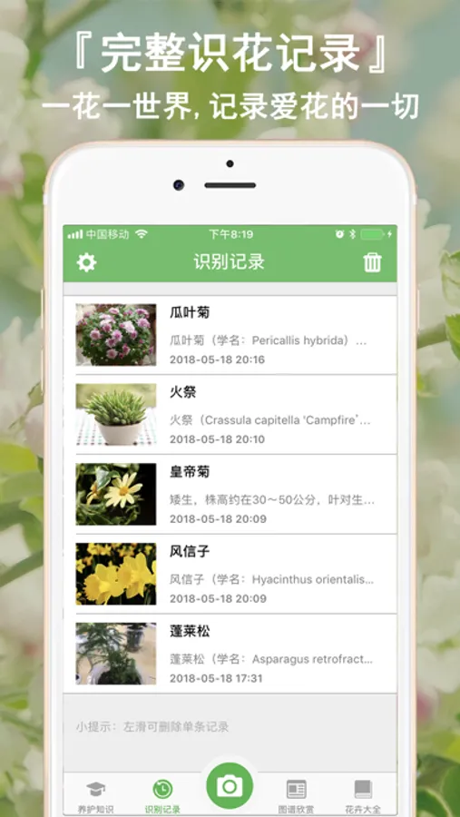 识别记录:自动保存识别记录,便捷查看了解植物,备份植物新知。