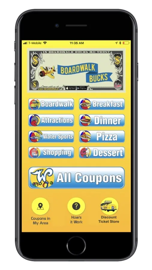 Download the Boardwalk Bucks app and have access to over 100 coupons for the Wildwoods, NJ