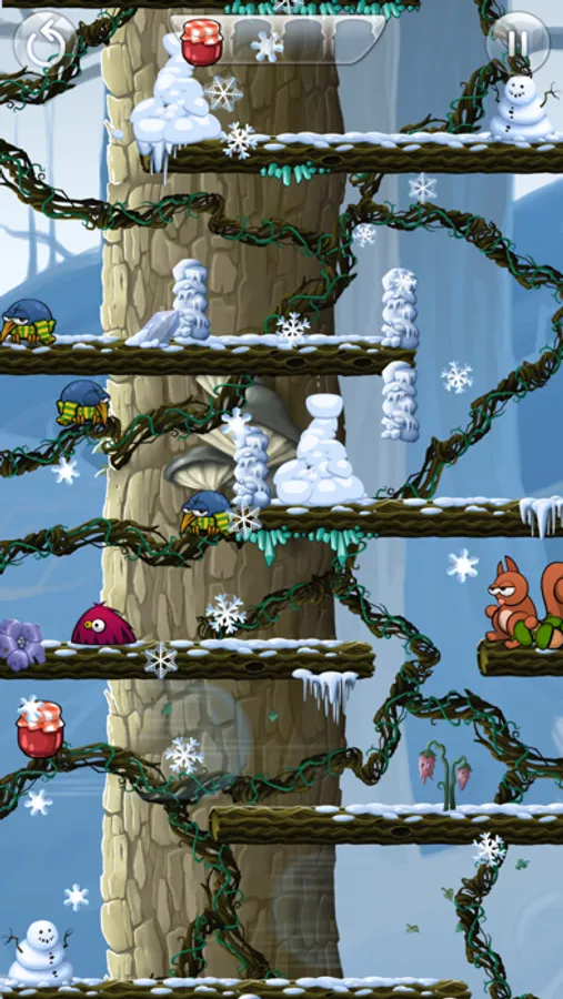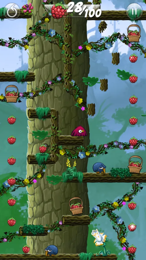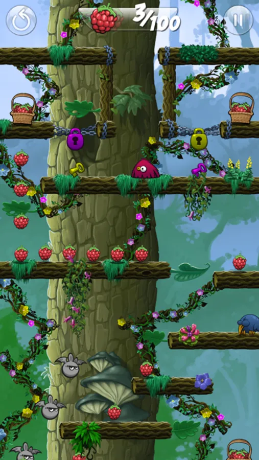 After a dramatic escape from the cage of evil birds, a cute furry creature must travel through a forest full of dangers to return to his beloved. By jumping on lower and lower branches, watch out for birds and collect fruit from hard to reach places. Discover new sceneries with beautifully designed levels. See what you can do and unlock all achievements.