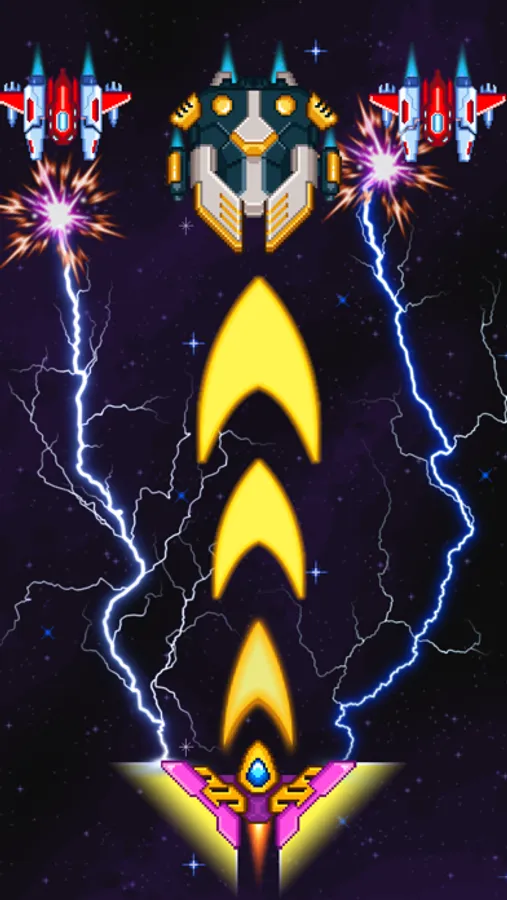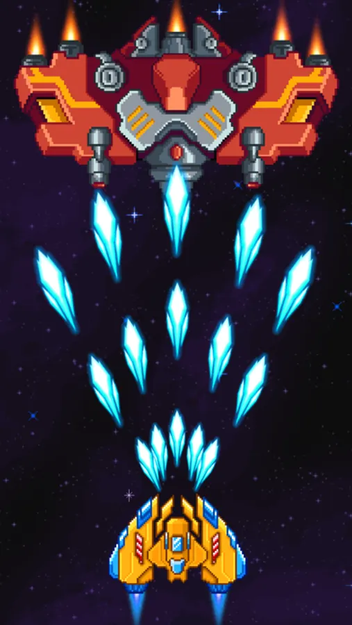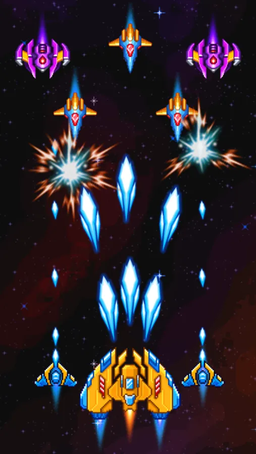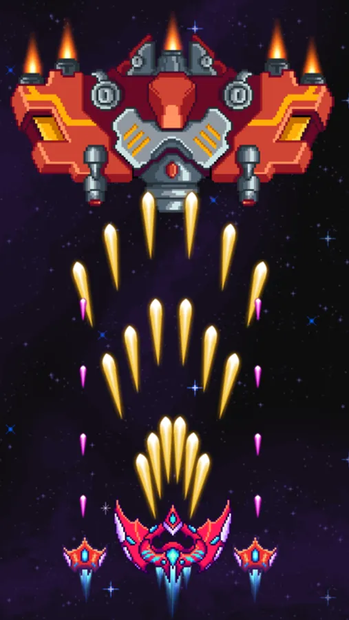 - User-friendly space retro shooting game played by just tapping and sliding on the screen