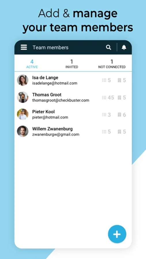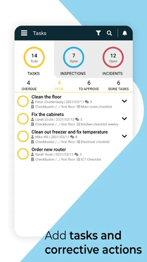 Invite your team members and work simultaneously on inspections with your team. Checkbuster streamlines your quality & safety process. Start now!